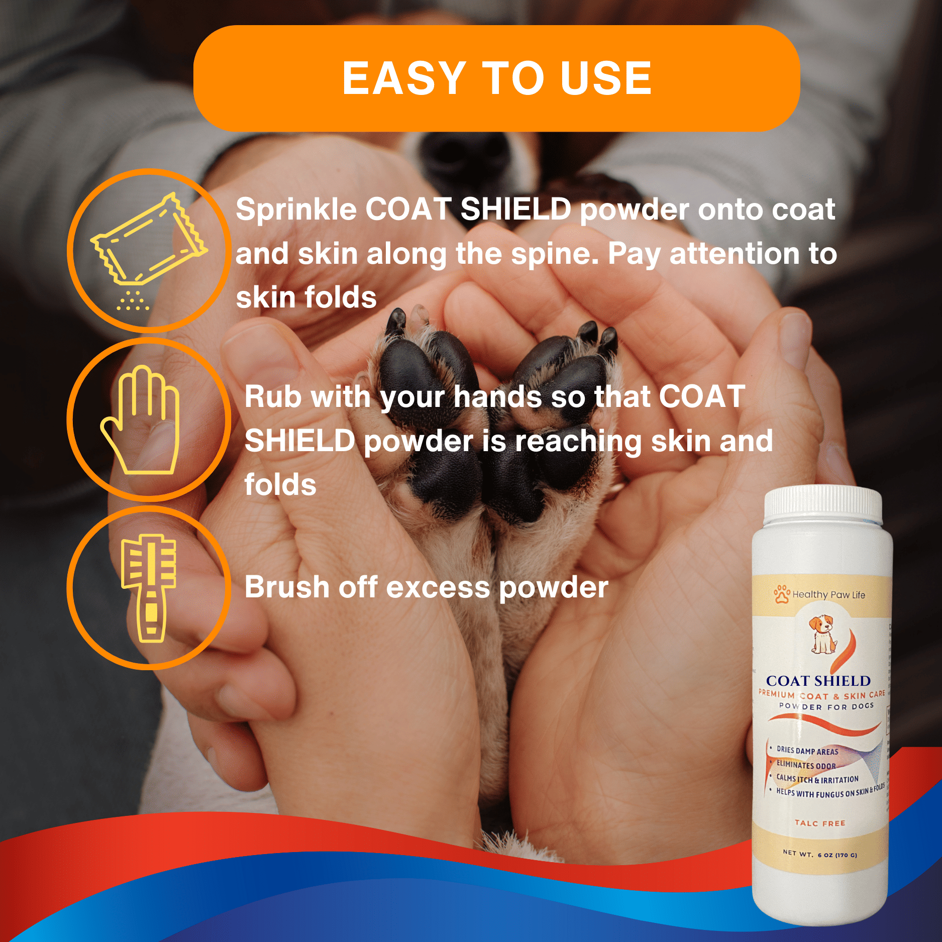 2.ELIMINATES MOISTURE and ODOR - Bid farewell to excessive moisture causing itching and scratching. Our Coat Shield protective powder promptly deals with moisture, yeast, and odors - essential for thwarting yeast infections. Keep your furry companion content and devoid of discomfort.