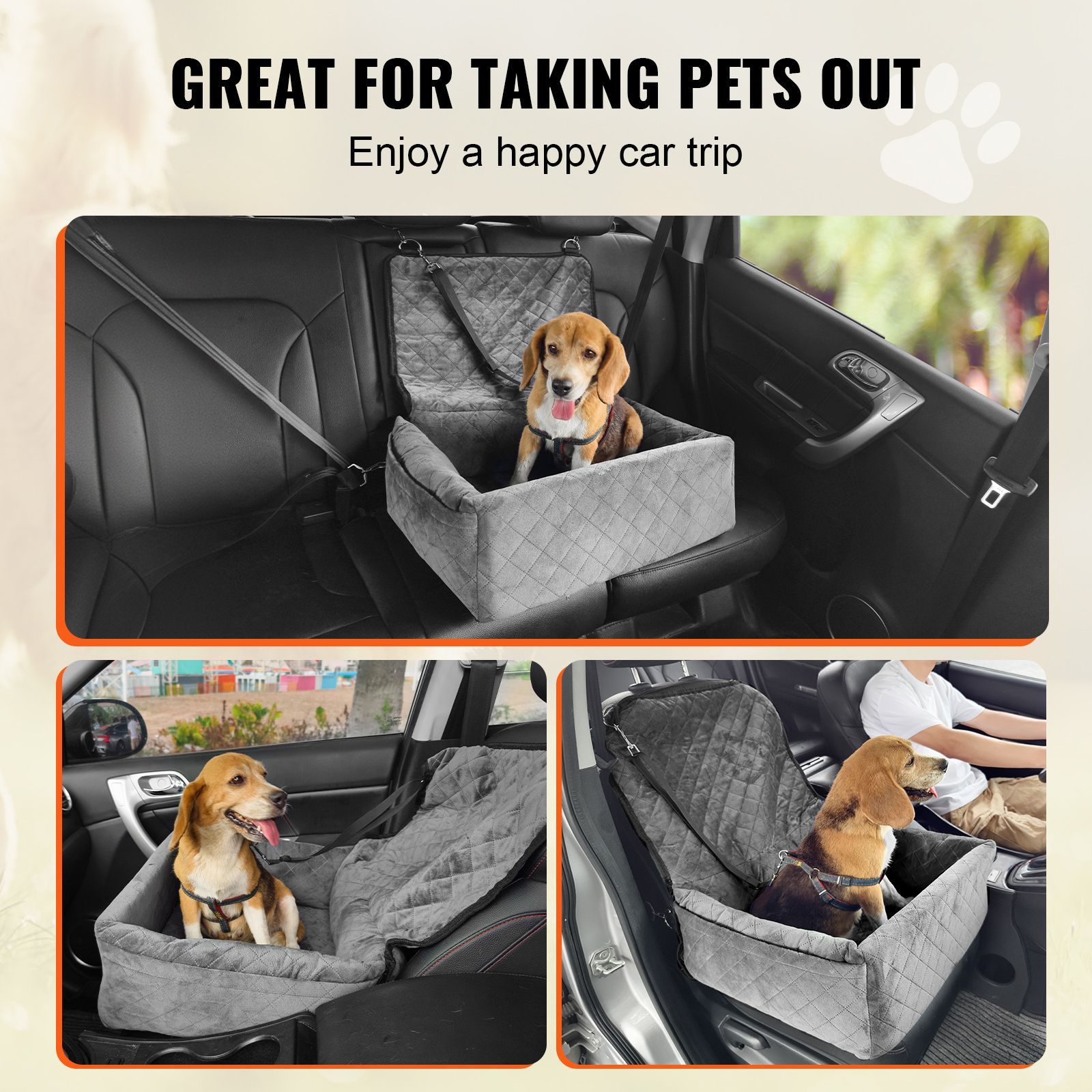 Made from soft fabric with sponge and PP cotton filling for a sturdy, wear-resistant seat. This dog booster car seat elevates your pet and reduces travel anxiety.