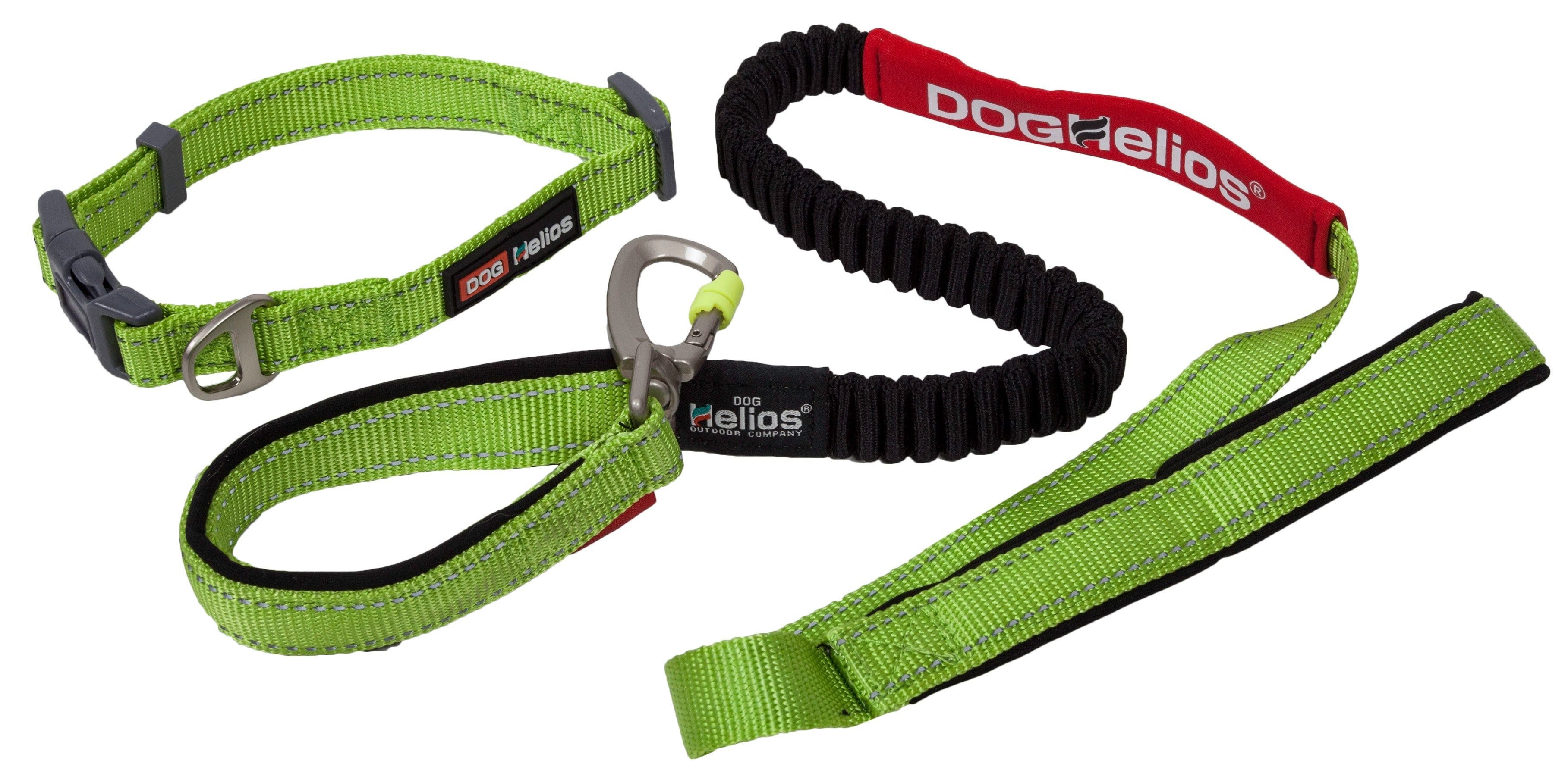 The Dog Helios Neo-Indestructible Easy-Tension Sporty Leash And Collar is composed of Tough Grade Nylon and Neoprene. Features dual reinforced stitching at every seam for added toughness and durability. Features a Neoprene band for a semi-tough pull with ribbed stitching for added easy tension with a loop by the swivel hook for a tougher closer tug when needed. Great for training and when running or jogging. The handle is inner lined with polar fleece for added handle comfort. Connect this to the included collar or any collar or harness for easy tension and less stress by either the neck or body area. The embossed hook swivels for multi-directional pull. The included matching collar is adjustable and opens and closes with a buckle. Get Outdoors with Dog Helios! Available in Multiple Colors and Sizes.