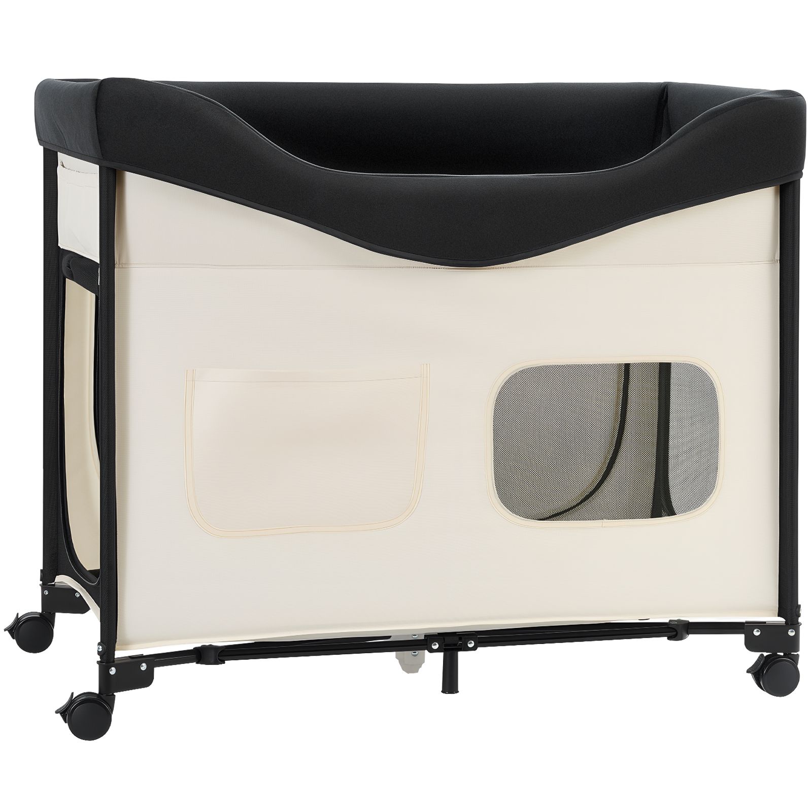 1.Dual-Level Companion Bed: The top platform of raised dog bed aligns with bed height for side-by-side sleeping, while the bottom den with 3 zipper doors and mesh vents provides a secure hideaway or open play space. Ideal for privacy during naps and bonding time