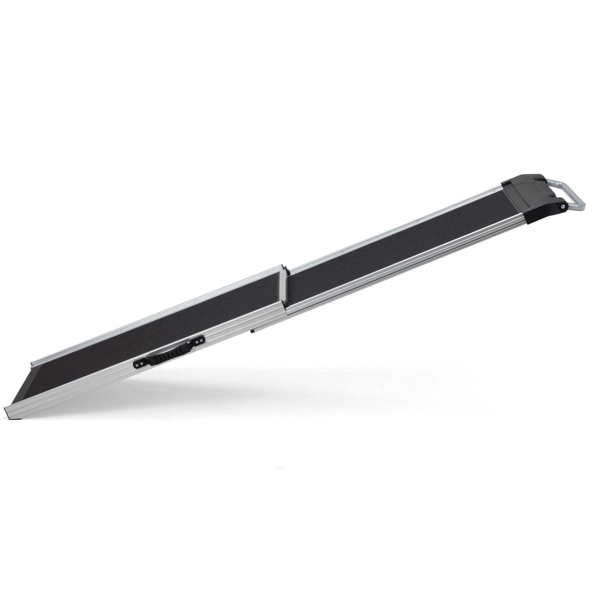 Foldable Aluminum Dog Car Step Ramp, Dog Ramp Climbing Ladder with PVC Handle, Non-slip Foot Mats for Most Sized Dogs, Pet Ramp Ladder, Black