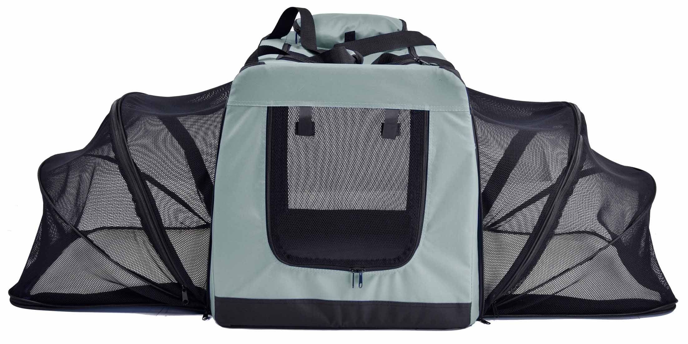 1.Features Dual-Sided Completely Expandable Accordion-Like Crate for Triple- Internal Lounging Area, Users can choose to open 1 or 2 sides. Simply Zips and Opens with Built-In Removable Pads on each sidewall. Allows for plenty of Sunlight with moonroof and Side-View Entrances.