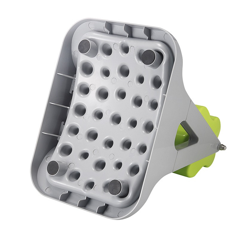 How This Dog Treat Dispenser Game Works: First the food is placed in the top feeder. The dog must turn the slow feeder to get the food through the leak holes, then continue to search for food on bottom plate maze.