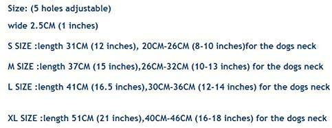1.size: (5 holes adjustable) xl size :length 51cm (21 inches),40cm-46cm (16-18 inches) for the dogs neck