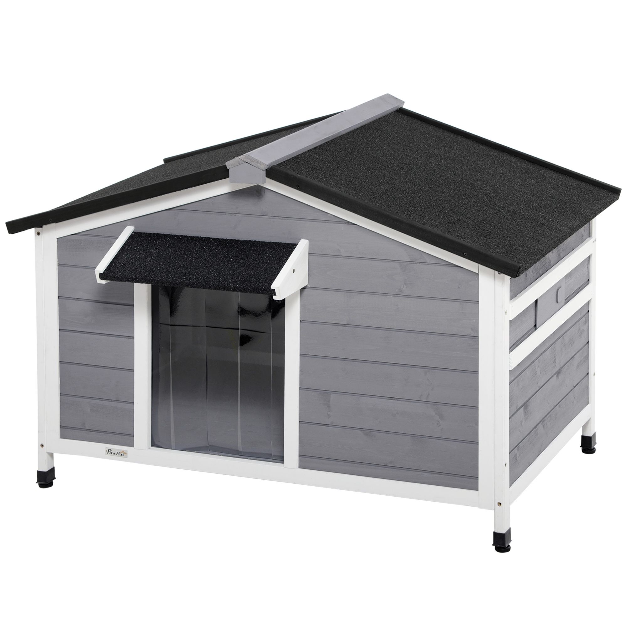 Discover the charm of the PawHut dog house, where style meets functionality. This wooden dog house ensures a cozy retreat for your furry friend, protecting them from the elements with its weather-resistant design and offering a spacious, comfy interior. Give your pet a home all their own; give your pet a PawHut.